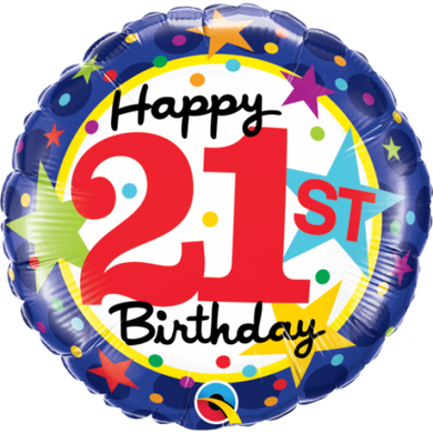 18 inch Foil Qualatex 21st Birthday Stars